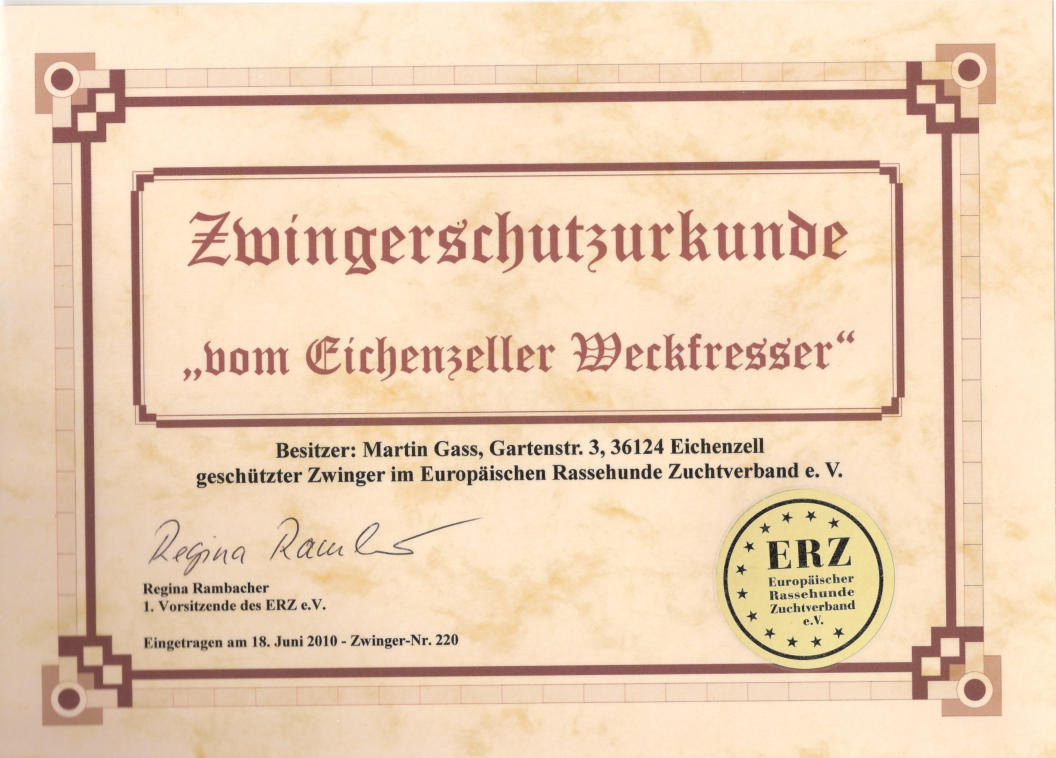 Zwingerschutzurkunde